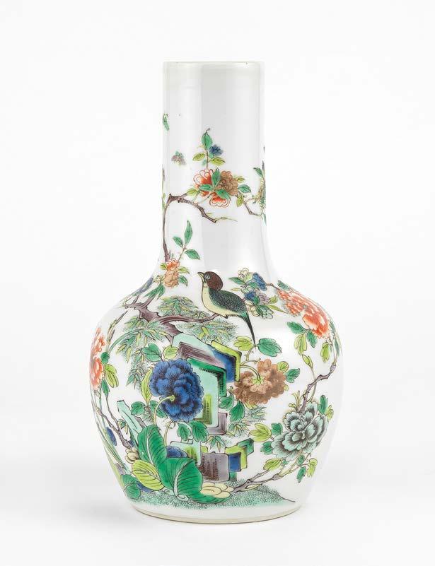Vase à décor de fleurs, faïence émaillée crème, H 22 cm 200/300