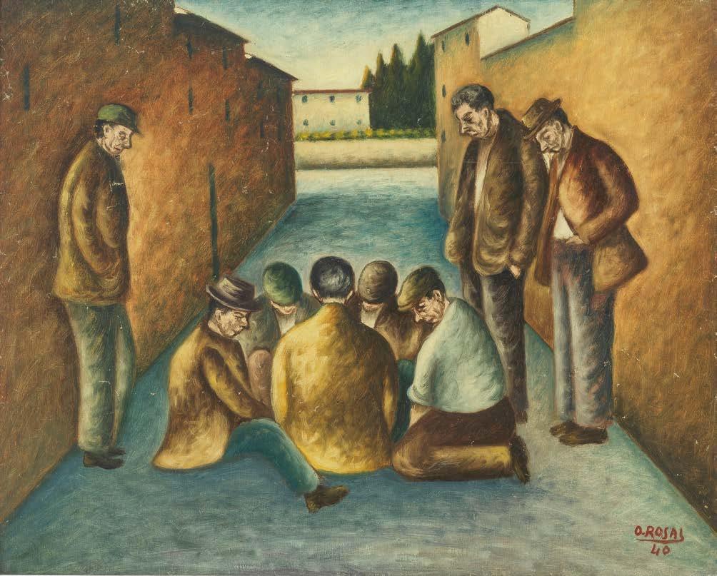 Joueurs de dés, huile sur toile, signée et datée 40, 79 x 98 cm 4000/6000