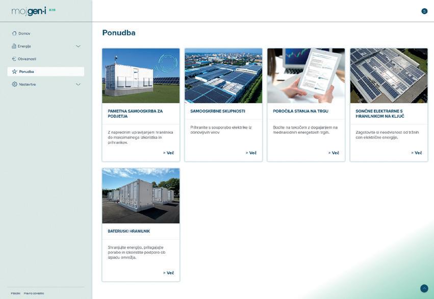 Ekskluziven dostop do naprednih rešitev Dostop do aktualnih ponudb in možnosti nadgradenj vaših obstoječih samooskrbnih sistemov, od baterijskega hranilnika do pametnega upravljanja proizvodnje in porabe, je še posebej preprost. Vse je zbrano na enem mestu.