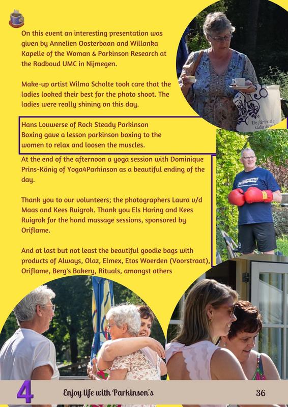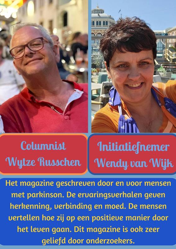 Voor pas gediagnosticeerden is het een eye-opener. En een goede manier om andere mensen te leren kennen die met deze ziekte leven en hoe ze omgaan met specifieke symptomen. De complete verhalen vind je in het tijdschrift. Wat doen ze in het leven om positief te blijven, waar worden ze gelukkig van en wat voor advies heeft de persoon voor jou. Verhalen die je kunnen inspireren om dingen anders te doen, maar ook het gevoel onder elkaar versterken om er voor elkaar te zijn. Een tijdschrift waar we voor elkaar kunnen opkomen en elkaar kunnen verbinden. Deel de verhalen met elkaar, voel je verbonden en krijg meer begrip.” www.wendysparkinson.com
