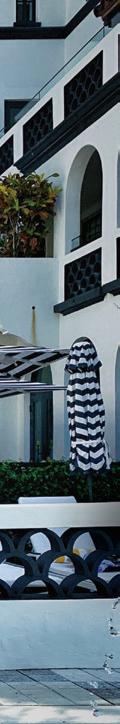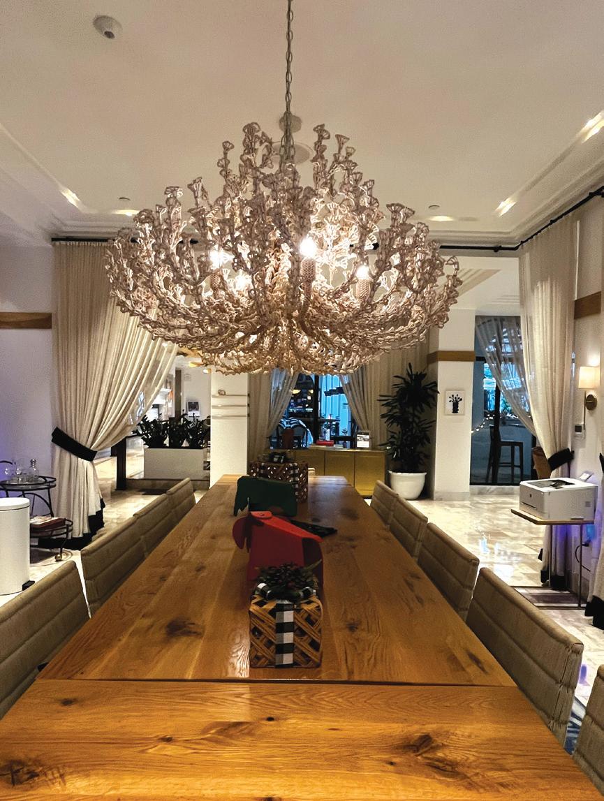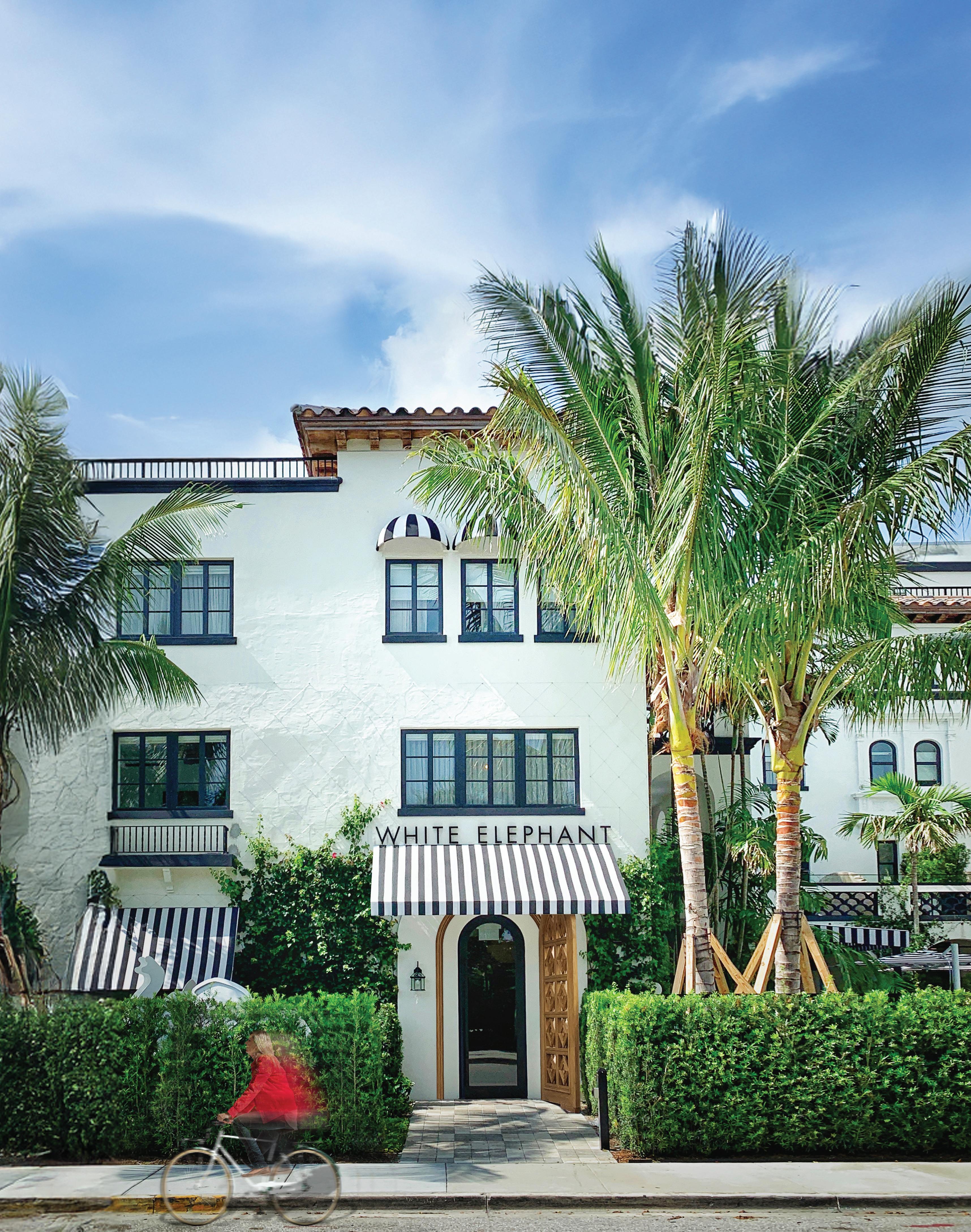 Located on Palm Beach’s storied Sunset Avenue, the White Elephant is a 32-room boutique jewel, where history and modern elegance collide. The building, a historic landmark since 1924, was reborn in 2020 with a sleek Mediterranean revival. Its black-and-white striped awnings and vine-draped façade make for an unforgettable first impression. As evening falls, the palms sway against a glow of twinkling lights, giving the hotel a warm, festive spirit no matter the season. whiteelephant.com twinkling lights, giving the hotel a
