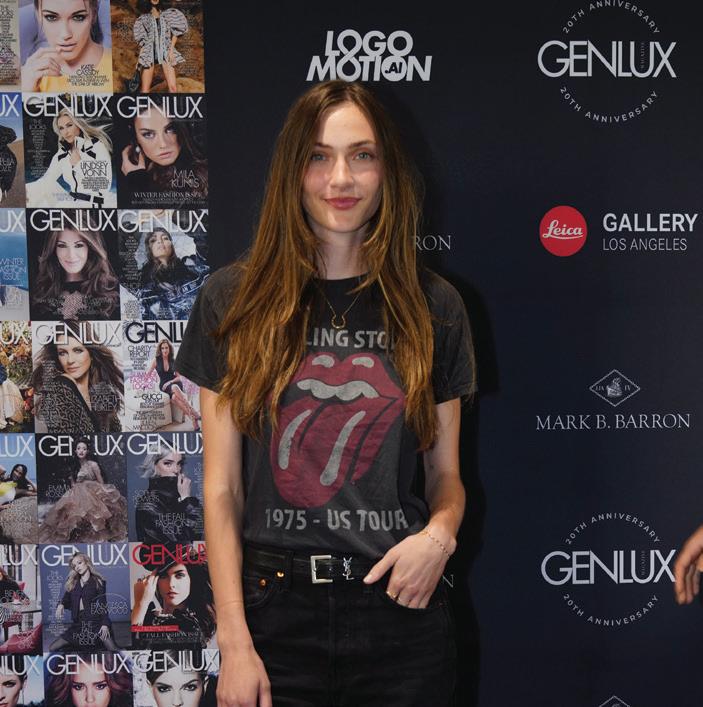ashionable guests descended on The Leica Gallery in West Hollywood to celebrate a landmark achievement— GENLUX ’s 20 years in publishing. The evening was hosted by Mark B. Barron, and LogoMotion.ai —the new AI app created by GENLUX creative director, Stephen Kamifuji. The evening also raised a glass to the new Fall issue featuring popstar Sophie Powers, whose viral American Idol song, STFU , caught the attention of GENLUX and earned her the cover. Publisher Cecilia Moreno welcomed and gave special thanks to the artists and guests who enjoyed wine from Wiens Cellars, Temecula, and from Aperture, Sonoma. All took home gift bags filled with a generous supply of Giovanni haircare and Shiseido cosmetics. Special thanks to Andrew Matusik, and Leica’s Paris Chong and James Agnew.