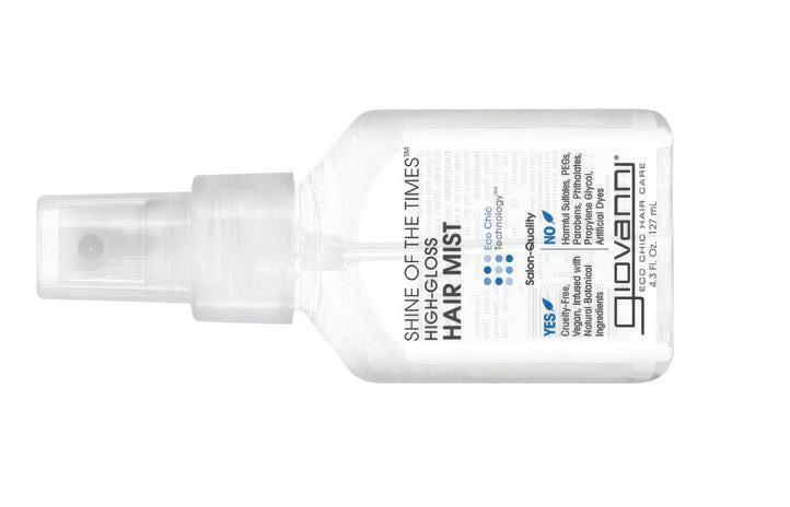 Once the hair is cooled, you can finish o the look by spritzing Giovanni Shine of the Times to get a full shiny frizz-free