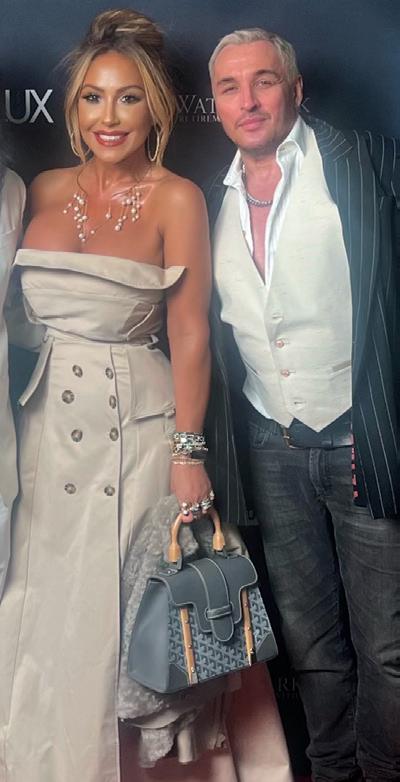 ANDREOLI ITALIAN JEWELRY ANDREOLI RUBY AND DIAMOND NECKLACE, $222,700; DAVID GROSS 4.33 GREEN AND PINK SAPPHIRE DIAMOND DROP EARRING, $24,500; THE GEM STUDIO 14K YELLOW GOLD130C PINK TOURMALINE AND DIAMOND BRACELET, $19,999.95, ALL AVAILABLE AT JEDORA.COM 116 GENLUX SPRING 2023