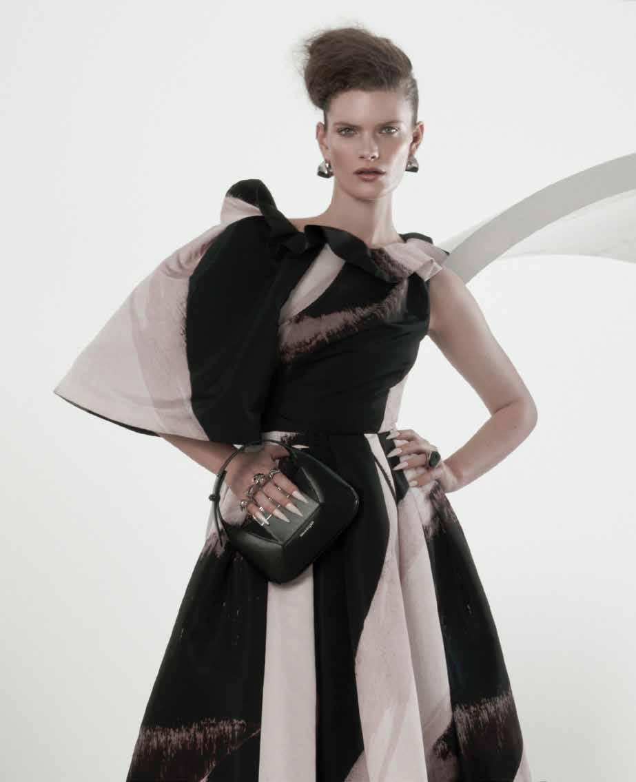 grounds with real-world photographs of jewelry and then bake them together in Photoshop. The no-humans-were-canceled results by James T. Murray and stylist Yuco Lacovara are a perfect portmanteau of AI and human ingenuity (p108).
