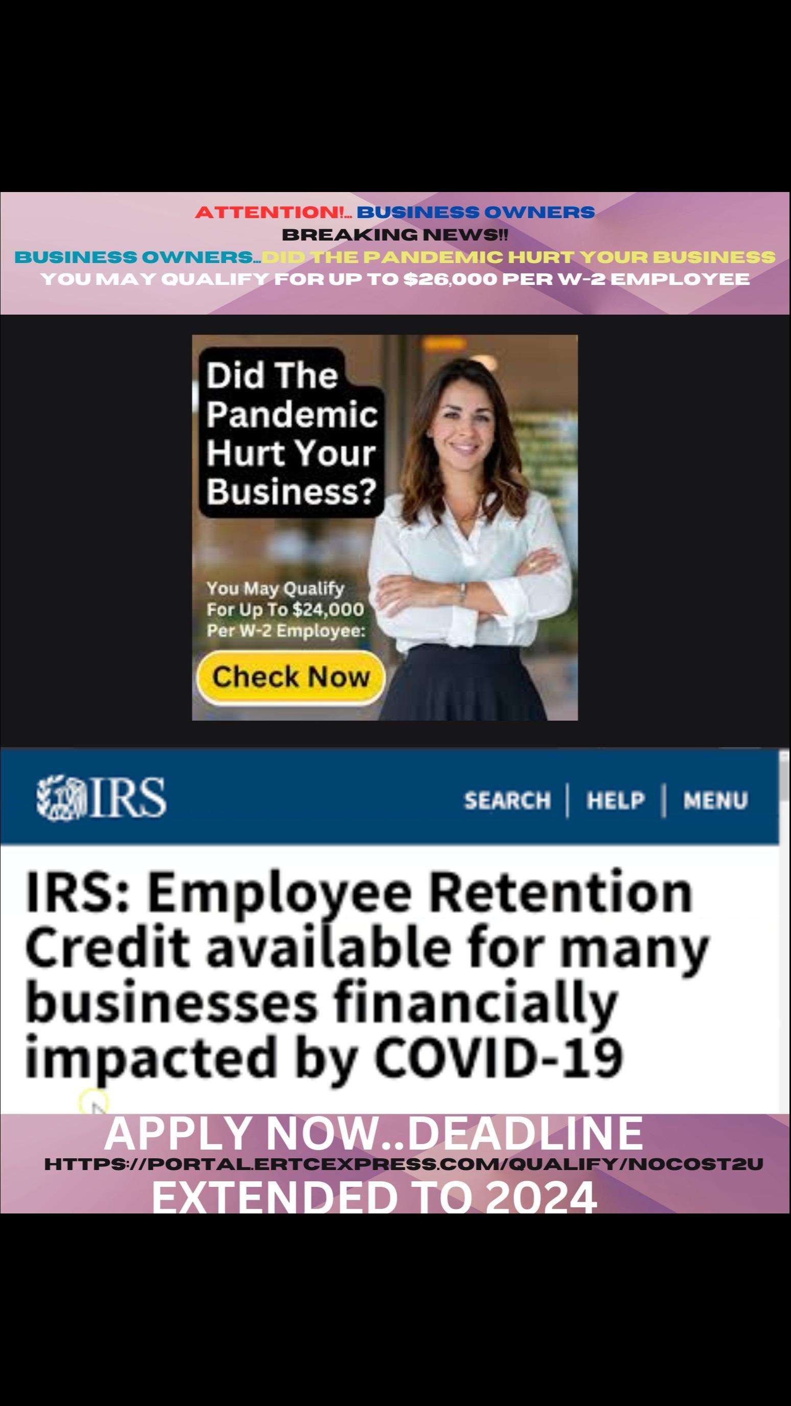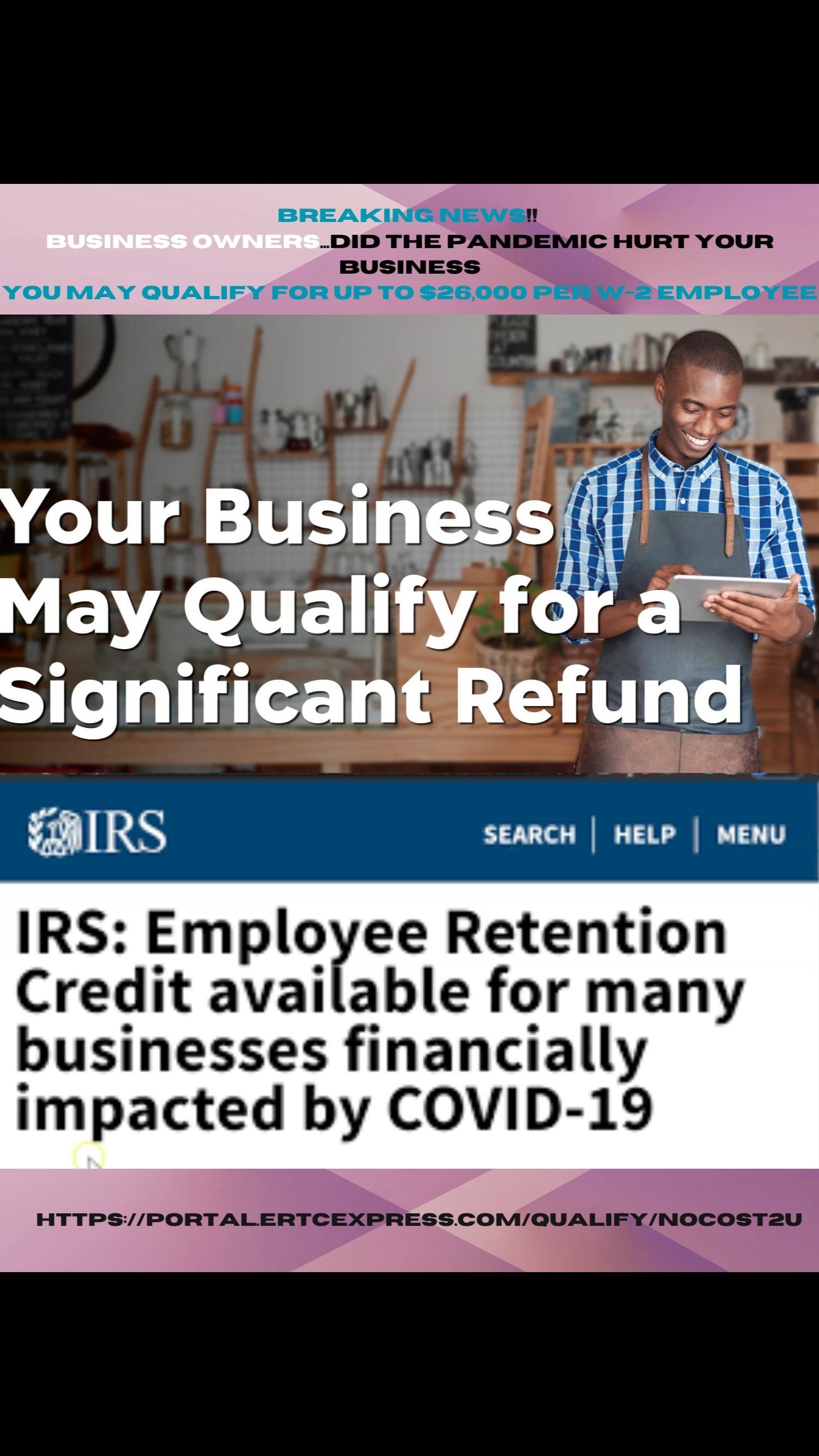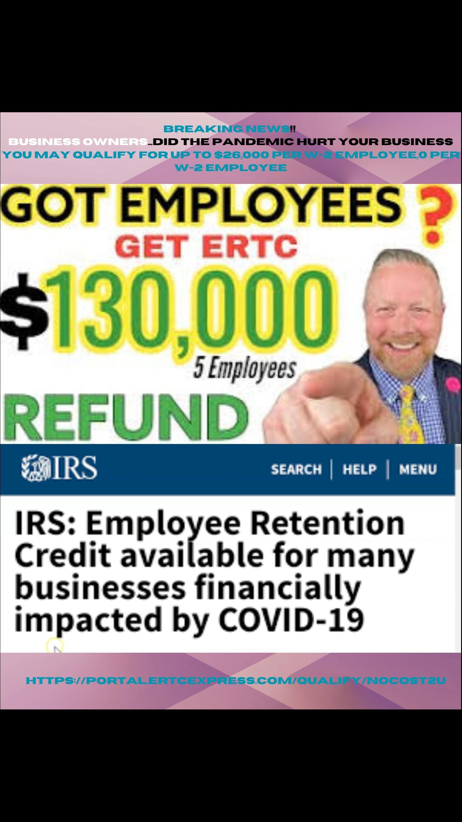 Youcouldgettensofthousandsofdollarsper employeeinrefundsfromtheIRS.Youonlyneed tohaveatleast2full-timeW-2employees,and youmustbepayingpayrolltax.