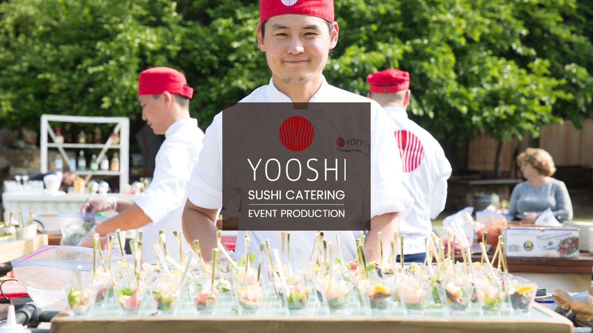 YooshiSushiCatering& EventProductionbringsyou exoticJapaneseflavors, givingyourguestsaculinary experiencetheywon'tforget.