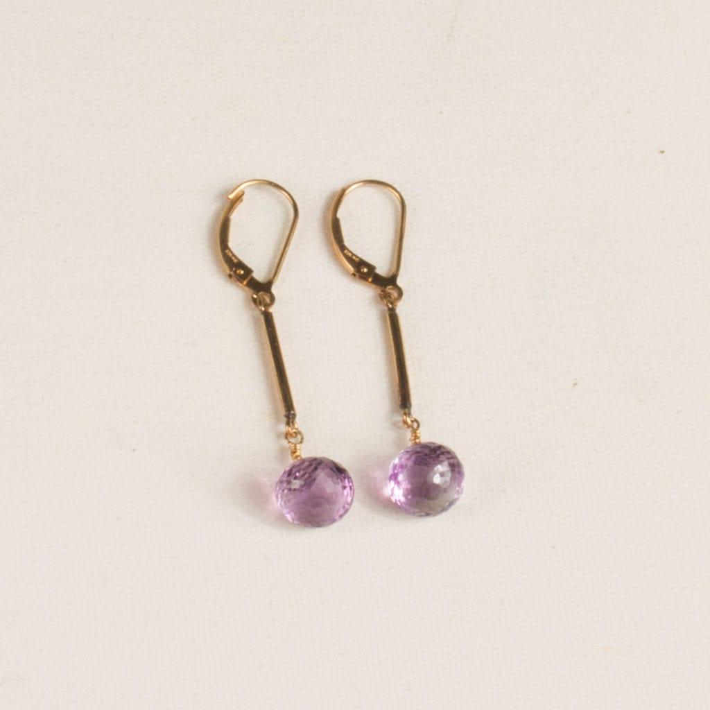 You'lllovethefactthatalltheitemsinthenewamethyst collectionhavebeenhewedingold,usingthejeweler'shighqualitygoldoverlayorfilledgold. TheseAmethystandGoldEarrings haveonionshapedamethysts hangingfromasolidgold-filledbar whichbeautifullycomplimentthe preciouswirewrappednecklace.