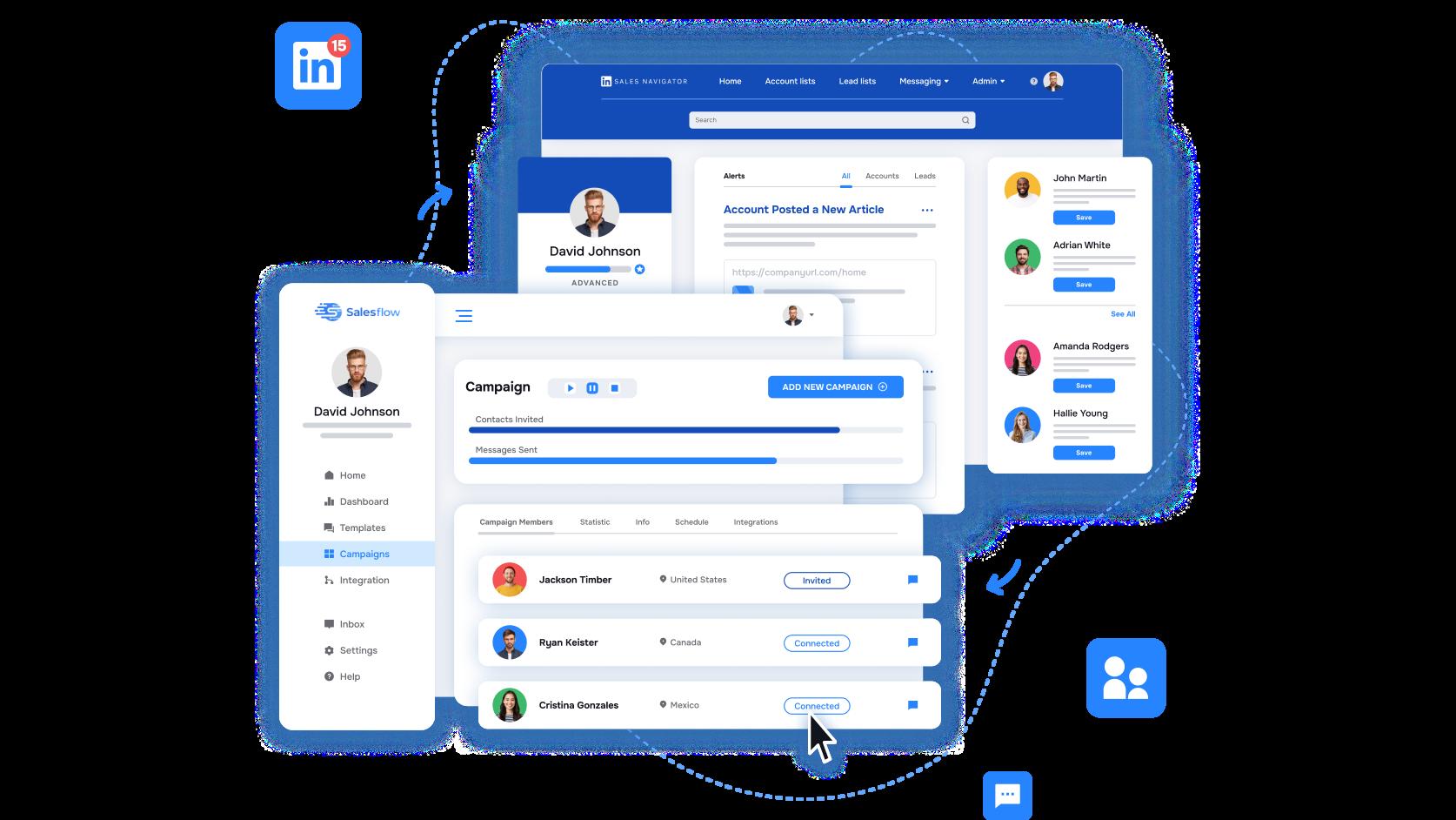 Salesflowisyoureasy-touseLinkedInoutbound salestool-andituses smartAItohelpyou automatemessage sequenceswithoutlosing thatprecioushuman touch.