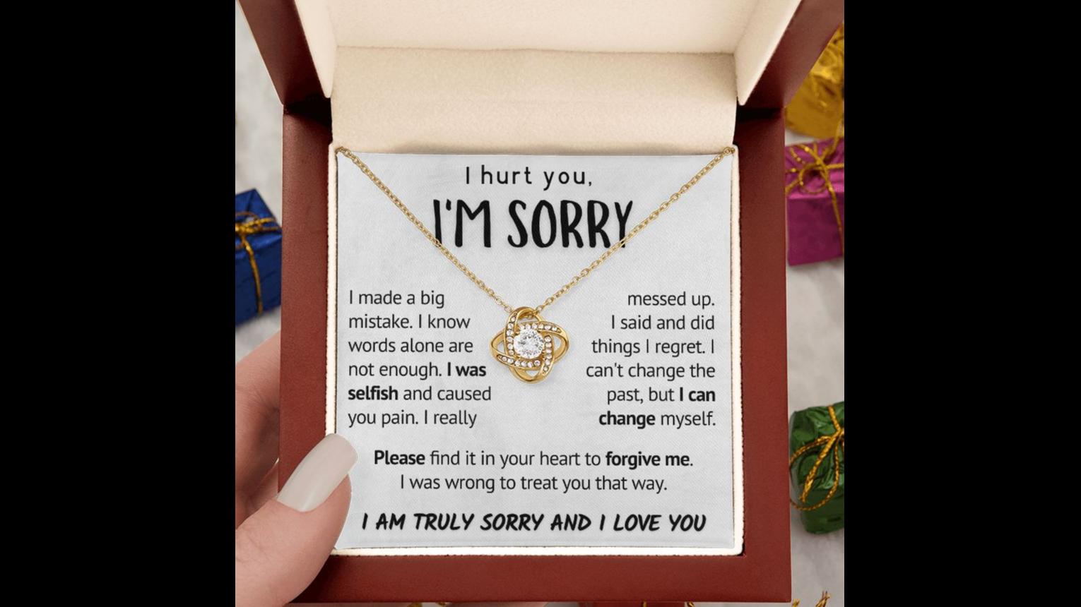 Thecollectionhighlightsthe"IMadeABig Mistake-IHurtYouI'mSorry”necklace.It featurestwointerlockingovalswithabrilliant 6mmround-cutcubiczirconiapendant.