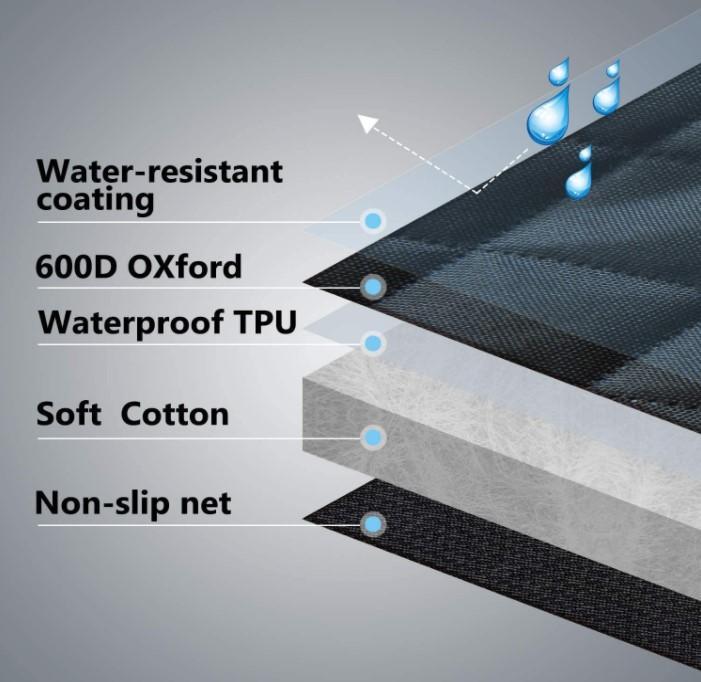 Formaximumprotection,Doviast’s seatcoverfeatures5layersof material.Itswater-resistantcoating covers600DOxfordpolyester fabricandthermoplastic polyurethane(TPU).