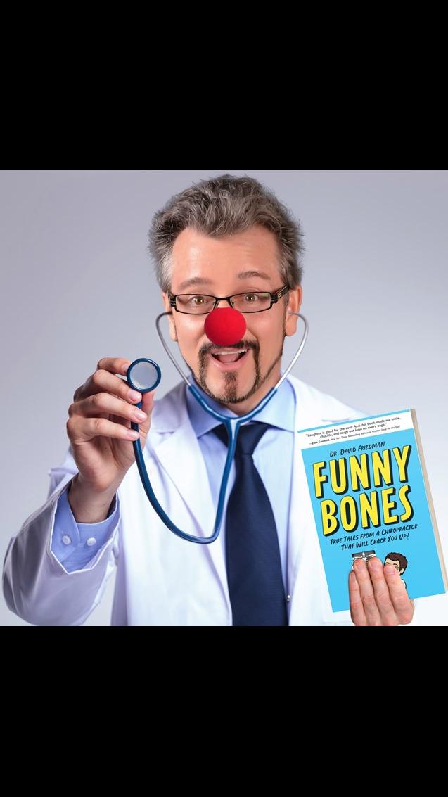 Whilegoingtothedoctoror chiropractorisrarelya laughingmatter,Dr.David Friedmantakesadifferent approachathisownpractice, andinhisnewbook,Funny Bones. Thebookshowsthatlaughter trulyisthebestmedicine,and ispackedwithhilarious stories,anecdotes,jokes,and otherhumoroustidbitsfromhis thirtyyearsinpractice.