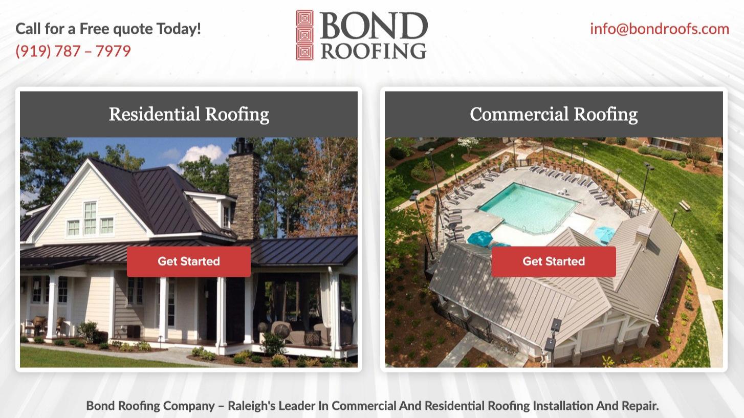 ServicingtheRaleigh, NCcommunities,Bond Roofingoffersan outstandingexperience compoundedwith excellentcustomer service.