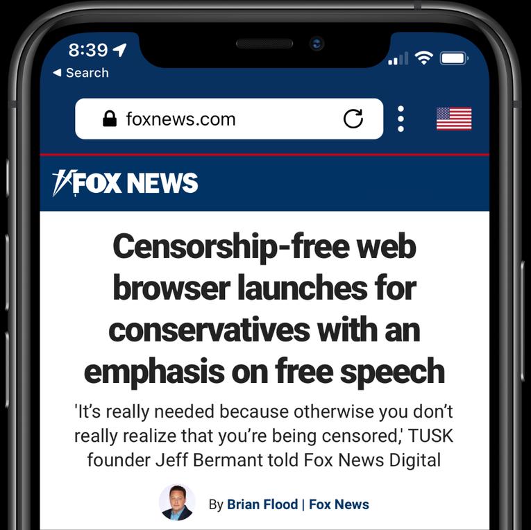 TUSKSearchgivesyouthe abilitytoaccessany content,atanytime, withoutthefearofitbeing censored,monitored,or manipulated Thoughcreatedby conservatives,thegoalof TUSKSearchistoallowthe freeflowofinformation, irrespectiveofwhereit’s comingfrom.