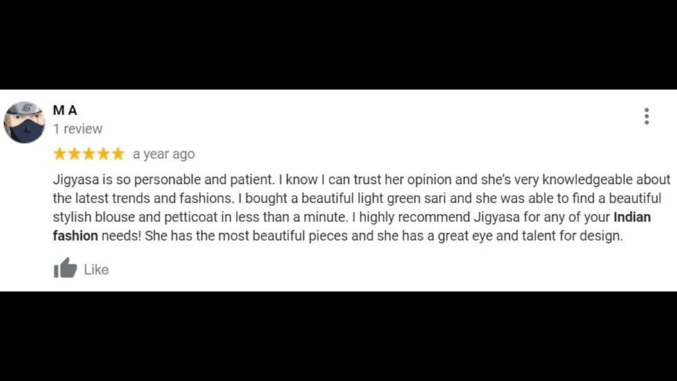 Recentfive-starreviewerslikeSachiBattipraised“thepatience”ofJigyasa’s customerserviceteam,who“evenhelpyoudecidebygivingtheirexpertopinionon whatsuitsyou”.