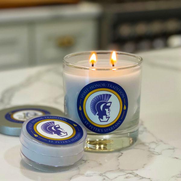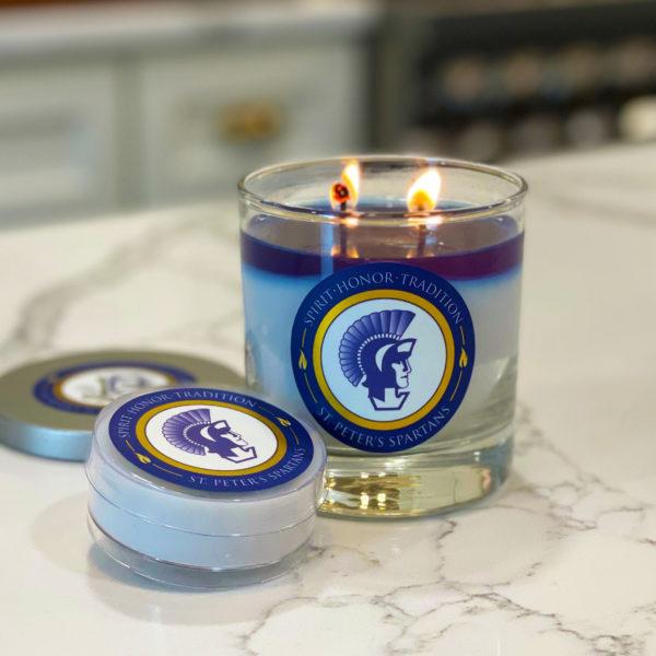 Youcanalsohaveyourcollege oruniversitylogoaddedtothe exterioroftheglassjarthat housesthecandle. FlameFanatic'scandlesarehandpouredintheirstudiofroma premiumclean-burningwaxblend andyoucanselectfromtwo differentsizes.