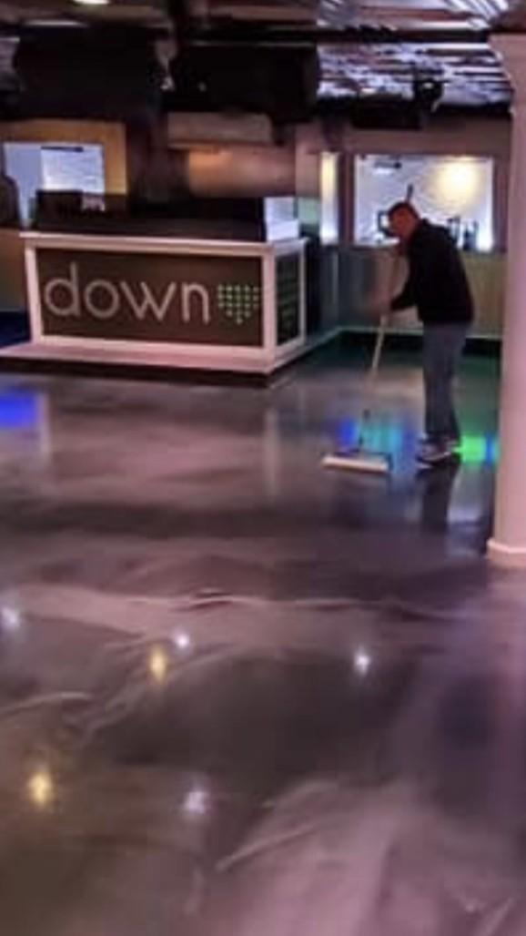 Next,ProREZ'sEpoxyFloor coatingandUrethanceCement wasappliedwithahighmil thickness,ensuringauniform andseamlessfinish.
