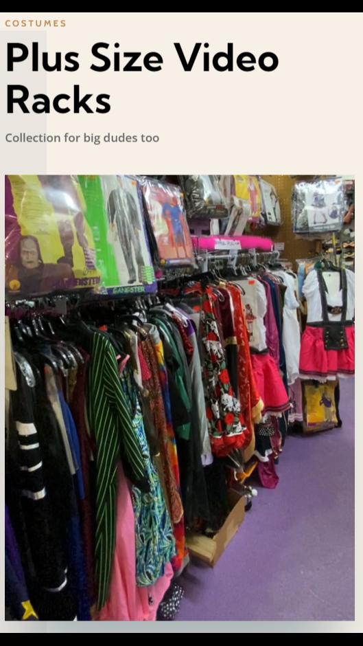 Thecostumiersassistin developingdress-upcharacter conceptsandthestore providesa'DoneForYou' servicewheretheywillcompile allthecomponentsofyour chosentheme! Highlightsfromthestore’s classicHalloweencharacter rangeincludeskeleton,ghost, deadbrideandgroom, EdwardScissorhands, mummy,andScream costumes,andmore.