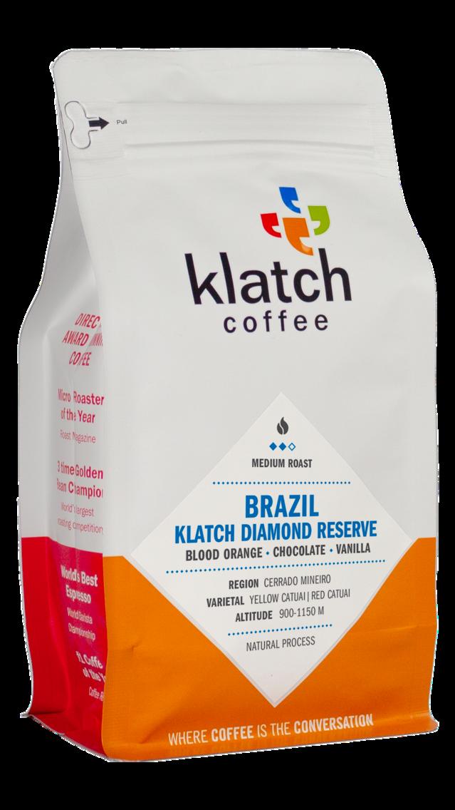 Sourcedfromthewell-known coffeeregionofMinasGerais, itcomesin12oz,2lbs,and 5lbspacks.AnotherGCG roasterwithahigh-endBrazilis KlatchCoffee'sDiamond Reserve.