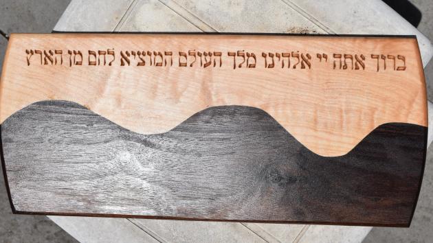 SeedsofTraditionhas distinguisheditselfinthe HandmadeJudaicaindustryby craftingaone-of-a-kindchallah boardadornedwithcarvedletters, whichcanbepersonalizedtoyour preference.
