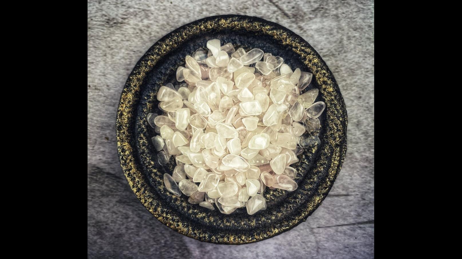 Thecrystalscanbeclean bybeingleftinabowlofs saltwaterovernightand revitalizedwithspirituale whenplacedinthelighto fullmoon.