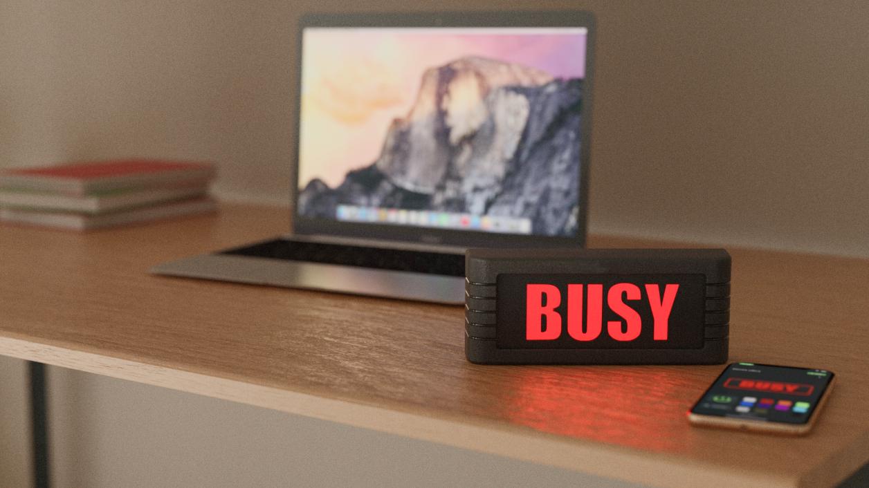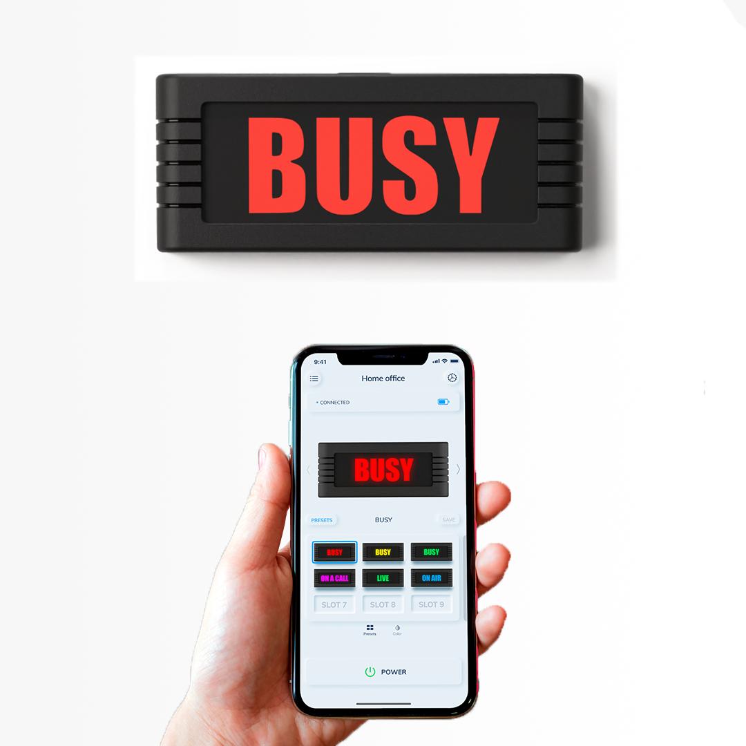 TheBusyBoxControlAppsupports bothiOSandAndroiddevices,and youcanturnyoursignsonoroff automaticallyaccordingtoyouronline calendarstatus. YoucanevenuseSirior GoogleAssistantforvoice activation.