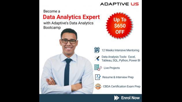 Becomeahighlysoughtafter dataanalystandattainone oftheindustry’stop qualifications.Registerfora DAbootcampfromAdaptive UStoday.