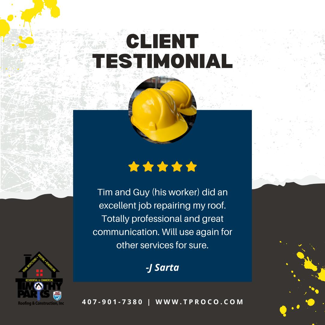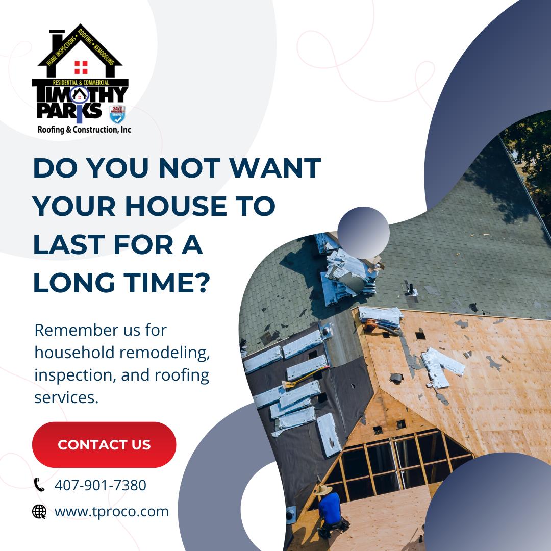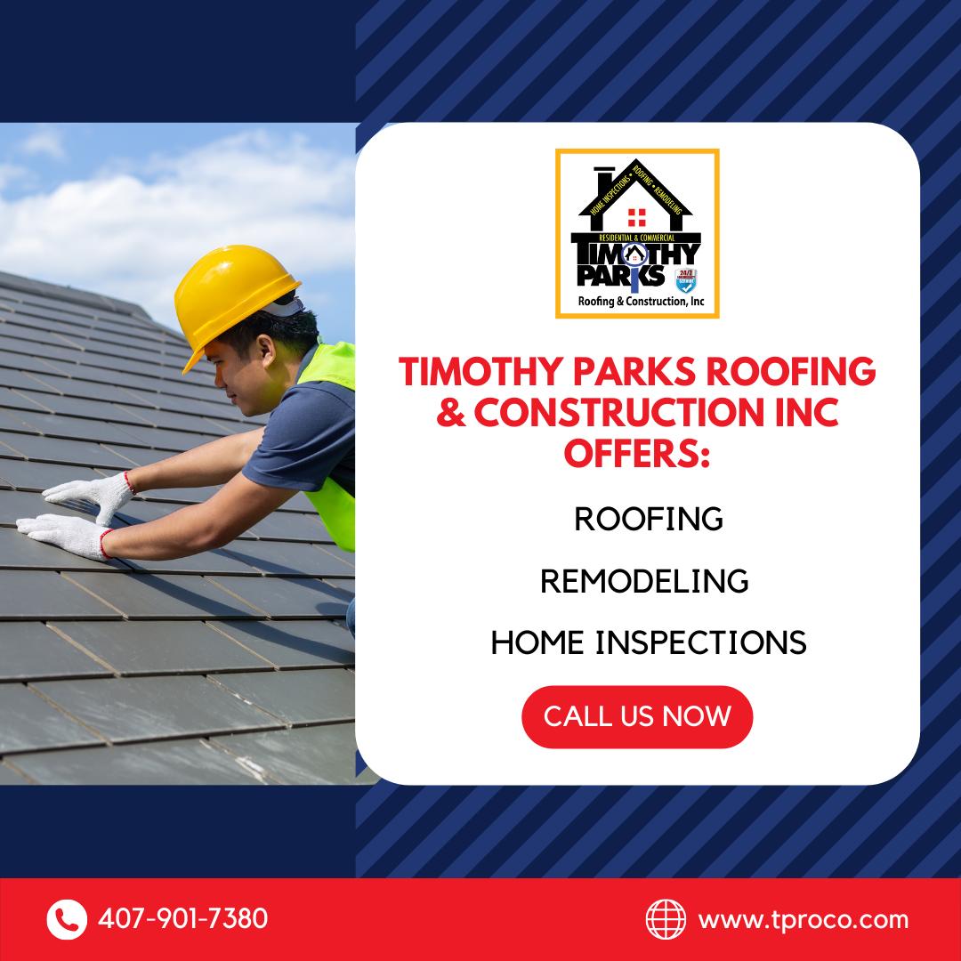 Thecompanyusesrooftarpsasatemporarymeasuretoprotectyour rooffromfurtherwaterintrusionandsecondarydamages,pendingthe completionoftheroofreplacement. TimothyParksRoofing&Construction isafullylicensedandinsuredroofing andconstructioncontractorwithover 40yearsofindustryexperiencein Orlando,Florida.