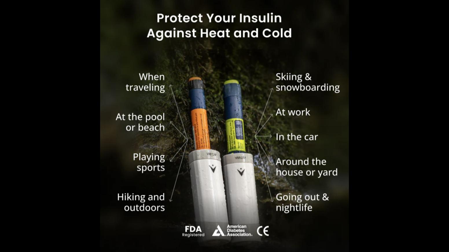 TheVIVACapisasmall andlightweightcarrierthat caneasilyfitintheirpurse orapocketwhilestill providing24/7protection totheinsulinpeninside. TempraMed recommendsthe deviceinparticular forwork,school, travelandsports.