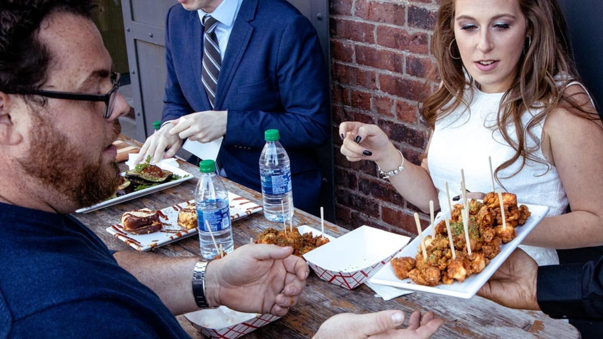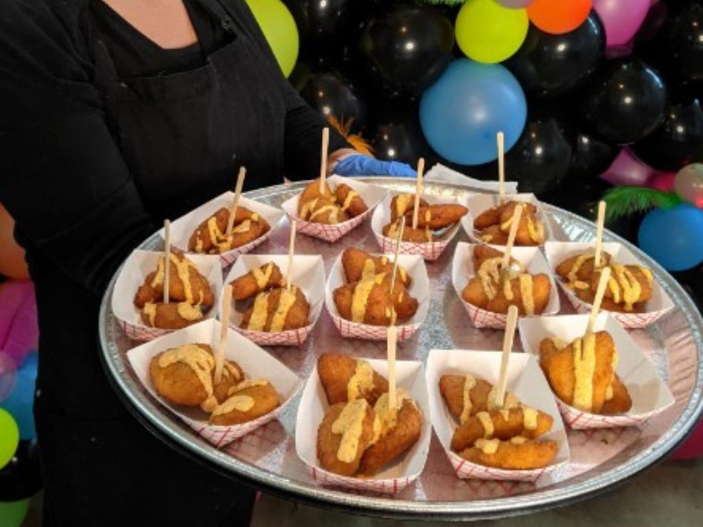 STUF’Disafoodtruckcatering servicesoyoucanopttohave servicedirectlyfromthetruck likeatafestivalorfair,orhand deliveredbytheirwaitstaff.