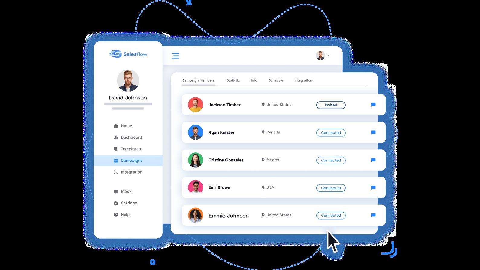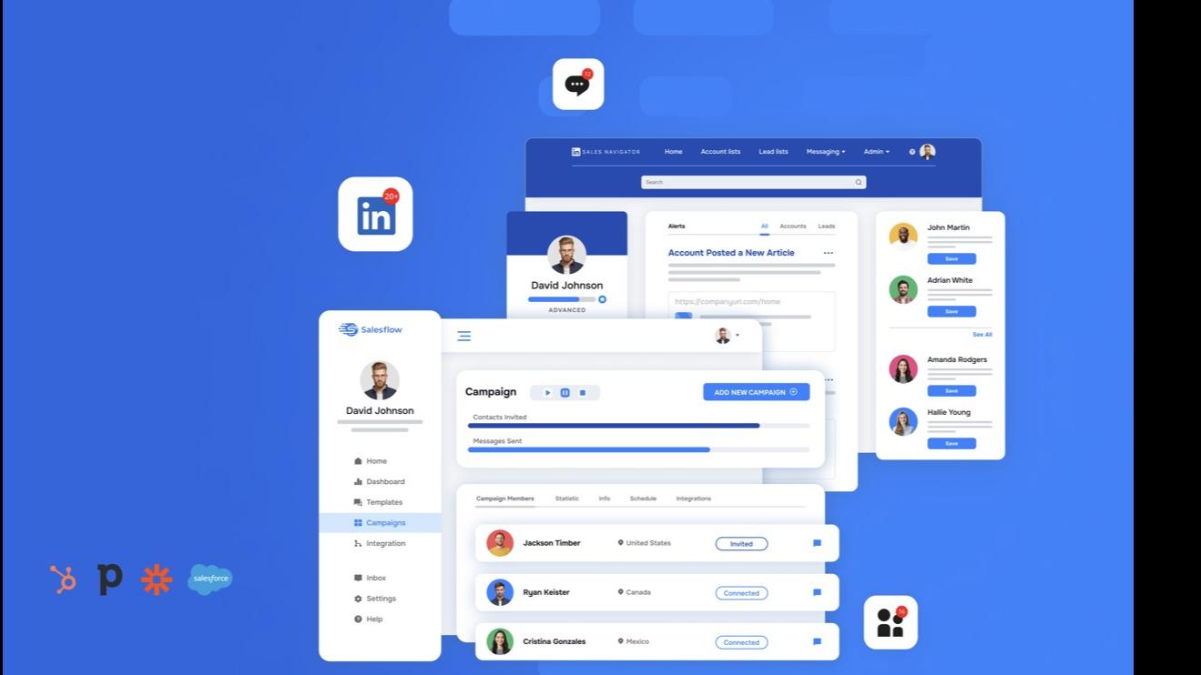 CoupledwithSalesflow’sCR integrationandadvanced analyticsacrossmultipleKP custommessagingautomati featurecreatesanall-in-one LinkedInoutreachtool.