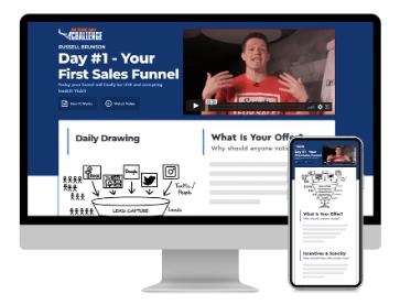 Withvideocoursesandover-the-shouldertrainingwith RussellBrunsonandhisteamofexperts,you'lllearn results-backedstrategiesandframeworkstogrowyour businessonline.