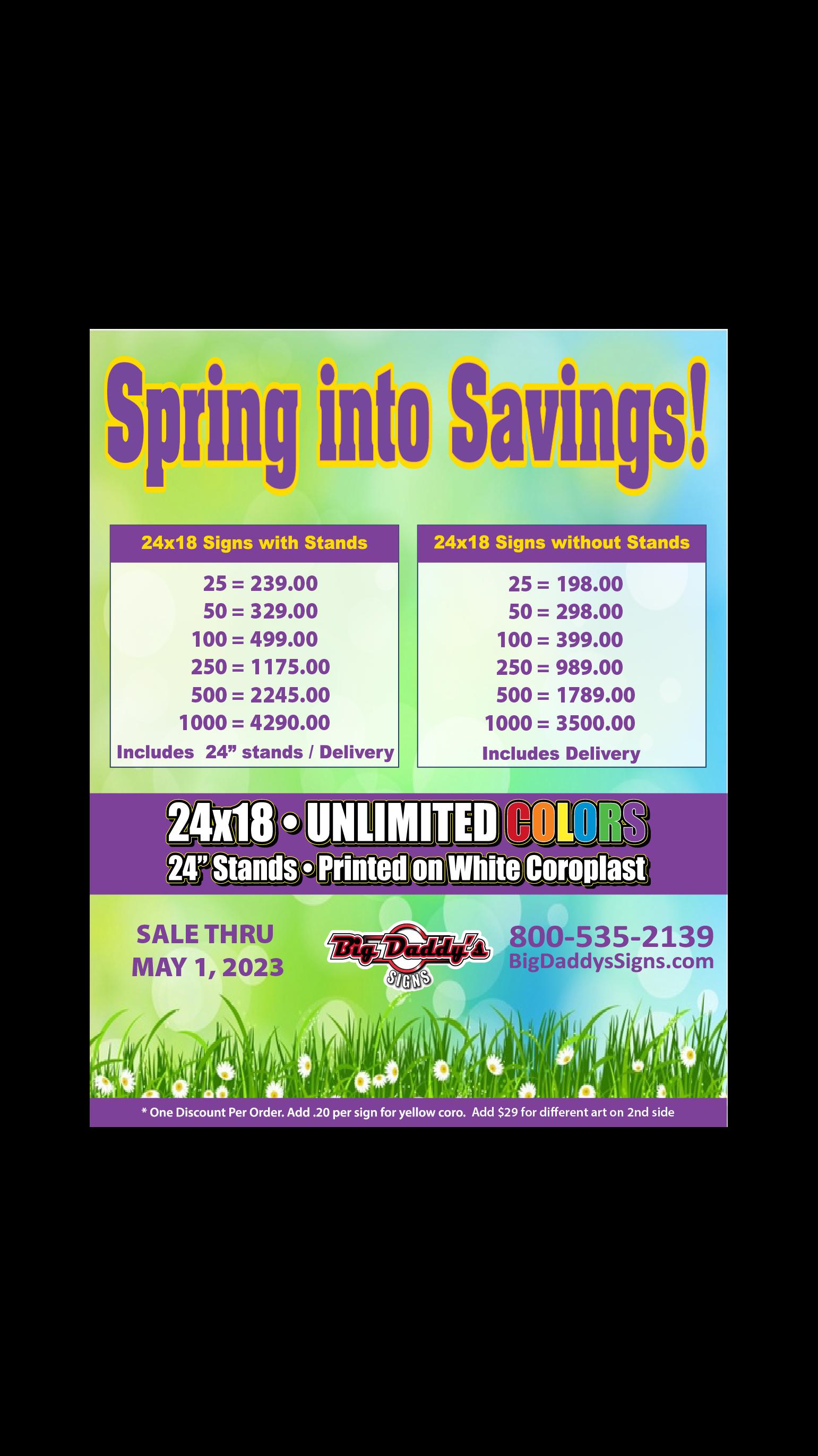BigDaddy’sSignshasprintedmillionsofsignsforcustomersin NewEnglandandthroughouttheUnitedStates,whetherfor commercialorpubliceventmarketing.