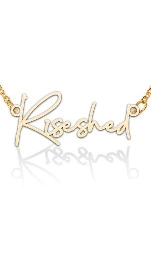 Thenamesarewrittenincursiveandarefinished ineitherstainlesssteelor18Kyellowgold.The necklaceis16”to18”longandcomeswitha complimentarysoft-touchgiftbox.