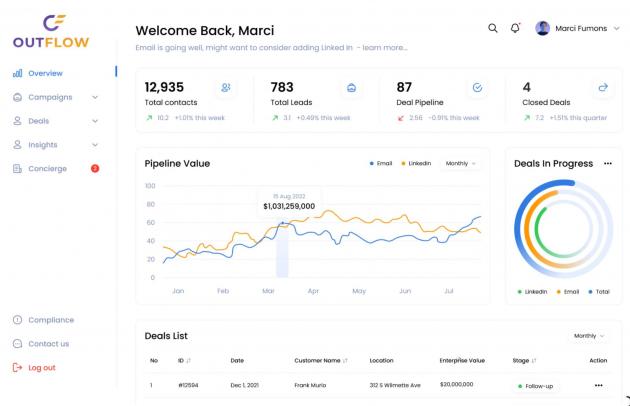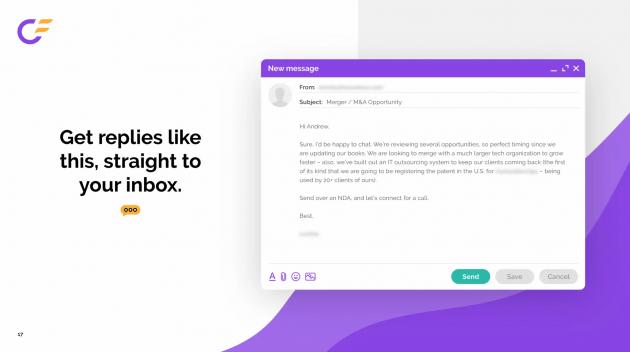 Aftervettingthedatato ensurethatthetargets matchyourcriteria, OutFlowcancontact themtoarrangea meeting.