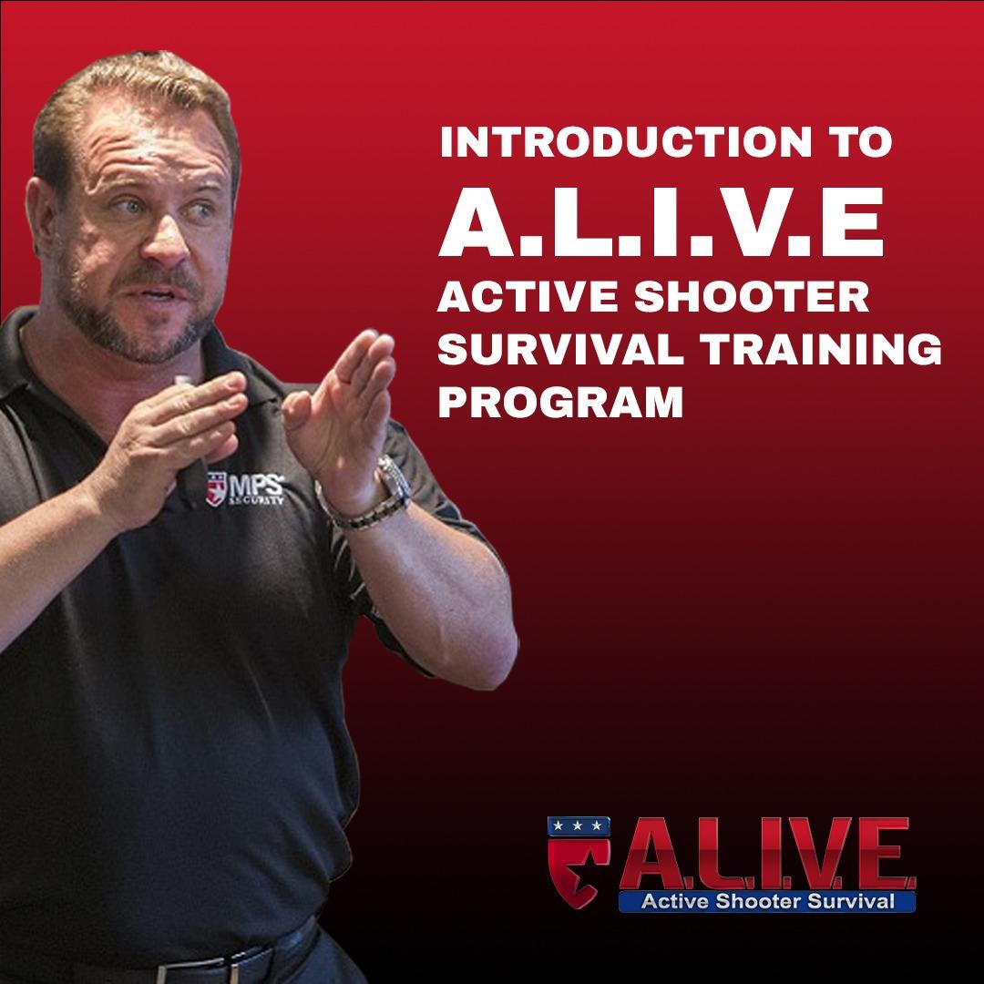 TheupdatedonlineALIVEActiveShooterSurvivalTrainingProgram teachesyoutorecognizethewarningsignsofpotentialviolenceand thephysicalstepsyoumusttaketosurviveanactiveshooter.