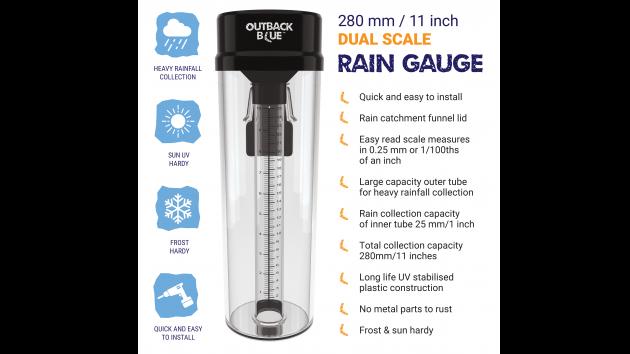 TheOutbackBlueRain Gaugeprovidesyouwith accuraterainfall measurementsinboth lightshowersandhuge downpours.