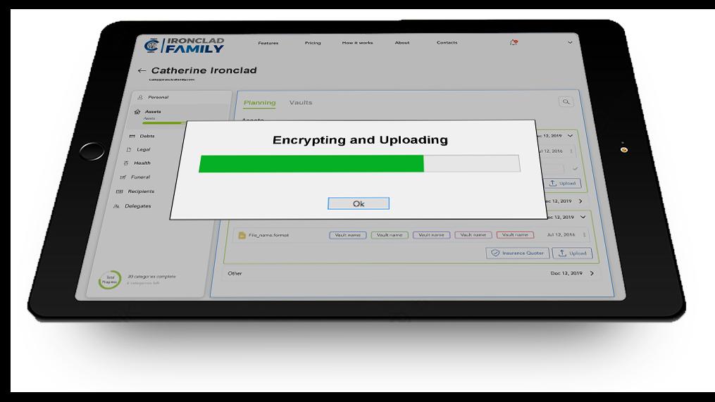 IronCladFamily’sdigital protectiontoolsuse encrypteddigitalvaultsto secureyourdocuments, files,passwords,andother assets.