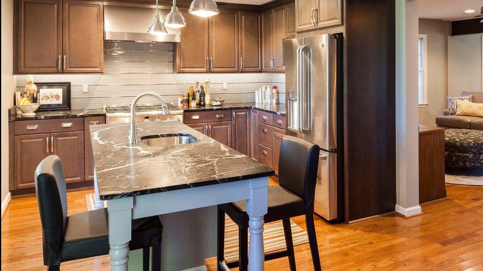Lessspacemeanslesscost;homeownerscanpurchase marblecountertopsandotherexpensivefeatureswitha luxurykitchen. Addingapeninsulawillgive additionalcounterandcabinet spaceandseating.