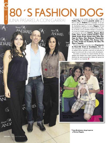 El pasado 6 de octubre se llevó a cabo el 80´s Fashion Dog. La divertida pasarela canina que se llevó a cabo en Andares fue el aparador en el que perritos de diferentes razas lucieron modelos exclusivos de diseñadores tapatíos y la marca Zingara. Al final del espectáculo, la gente tuvo la oportunidad de adoptar un perrito y con su donativo entraron a una gran rifa en la que los invitados ganaron grandes premios de los patrocinadores del evento: O.D.E.S., Zingara, Black Coffee, Drea, Tucane, Gabriel Sánchez, Super Salads, Krispy Kreme, Burger King, Shifra Spa, Capa de Ozono, Cloe, Botanicus, Mistertennis, Tous, Nike, Steve Madden, Pols, Avenue, Canopy, Gula, Gradas de Occidente, Pal Zileri, Pet Xpert y Zeppelin. El evento se realizó a beneficio de la Organización de Desarrollo Social en Guadalajara, A.C. con el fin de apoyar su campaña de concientización contra el maltrato de las mascotas, y este año en particular, se apoyó la construcción de su nuevo centro de adopción. Esa tarde se reunieron las mejores familias de Guadalajara para festejar esta magna pasarela, además de directivos de varias asociaciones y líderes de opinión de la ciudad con sus mascotas.