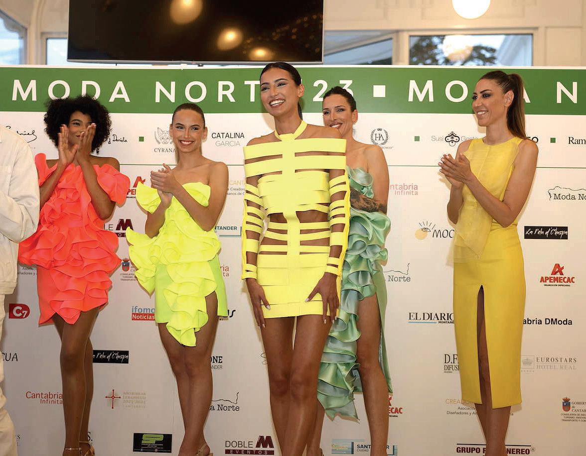 También asistieron el director territorial del Banco Santander en Cantabria y Asturias, Manuel Iturbe; el director general de Solvay para España y Portugal, Jorge Oliveira; la directora de Relaciones Institucionales y Sostenibilidad del Grupo Pitma, María Eugenia Cuenca-Romero; y el presidente de APEMECAC, Miguel Rincón. La directora de JCDecaux, Ana Cachón; la directora de Marketing de Lupa, Marisa Hoyuela; la jefa de Marketing de El Diario Montañés, Marta Mena, y el director comercial del Grupo Sardinero, Gustavo Cubero. La subdirectora del Eurostars Hotel Real, María Martínez Alberdi; la abogada, Beatriz Fernández Bermejo, y las empresarias, Sabela De La Llama y Sol Santamaría, entre otros. La rma cántabra ‘Baal Bomber’ (Torrelavega) inauguró la pasarela de ModaNorte 2023, que tuvo como invitada especial a la artista guipuzcoana de origen nlandés, Tytti Thusberg. En la segunda jornada participaron los diseñadores y rmas ‘PumbaLumba’ (Santander), Fran Dorela (Santander), ‘Amarenak’ (San Sebastián), ‘Peletería Gabriel’ (Zaragoza), ‘My Closet’ & ‘DdDaniela’ (Santander), ‘Cyrana’ & ‘Casquito de Porcelana’ (Asturias) y ‘Catalina García’ (Santander). El tercer día,
