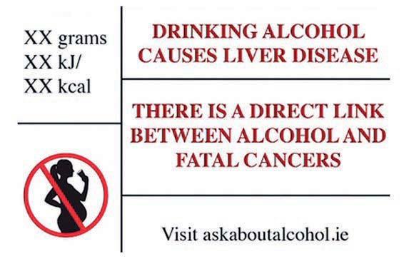 Un modelo de etiqueta que se pretende poner al vino en Irlanda.