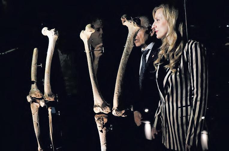 RESTOS FÓSILES. El Museo de la Evolución Humana (MEH) es uno de los pocos museos que ofrece a los visitantes fósiles originales hasta más allá de un millón de años. Si el pasado año, con motivo del Día Internacional de los Museos, que se celebra el 18 de mayo, se incluyeron en la exposición permanente la columna cervical del cráneo 5 (Miguelón) y la columna lumbar de la pelvis 1 del mismo yacimiento (Elvis), este año es Prometeo quien va completando sus extremidades inferiores, y engrandece de nuevo la colección de fósiles originales del MEH. Además, por primera vez desde que se inauguró el MEH, se añaden fósiles humanos de más de ochocientos mil años de antigüedad al espacio dedicado al yacimiento de la Gran Dolina.