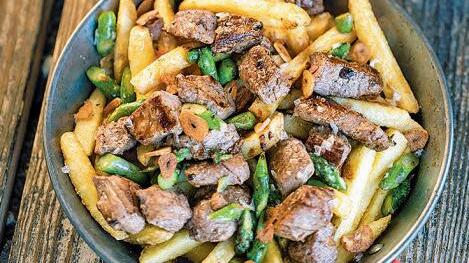 UN CLÁSICO: El toque más tradicional llega con platos como daditos de ternera salteados con patatas, puntas de trigueros y chips de ajo. Su presentación lo convierte en un plato ideal tanto para compartir como para degustar de forma individual.