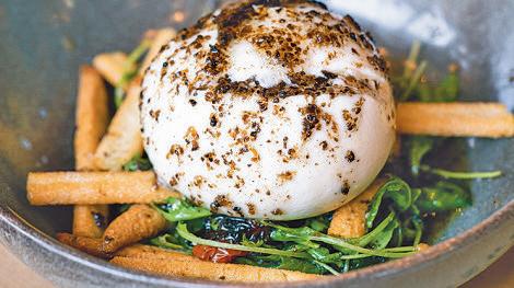 FRESCURA Y SABOR: Nuestra experiencia en El Kiosko de la calle Ponzano arrancó con una burrata con miel de trufa sobre base de rúcula, tomate seco confitado y Grissini Cristal. Un entrante ideal para cualquier época del año.