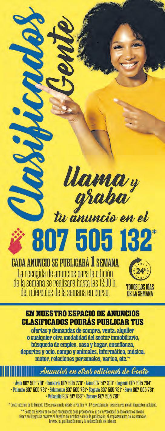 Gente en Burgos no se responsabiliza ni se identifica con las opiniones que sus lectores y colaboradores expongan en sus cartas y artículos, ni con el contenido de las inserciones publicitarias contratadas.
