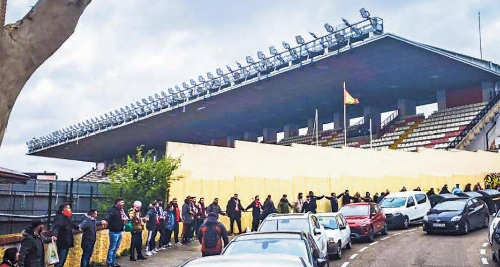 La Agrupación de Peñas del Rayo organizó una cadena humana alrededor del estadio para hacer visible el rechazo de la afición a una posible salida del club de la franja de su campo de la Avenida de la Albufera Los alrededor de 300 seguidores dijeron alto y claro: ‘Nuestro barrio no se toca’