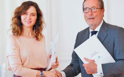 La presidenta de la Comunidad de Madrid, Isabel Díaz Ayuso, firmó esta semana en la Real Casa de Correos un acuerdo marco de colaboración con el director general de la Fundación ‘la Caixa’, Antonio Vila Bertrán, que contempla distintas actuaciones con-