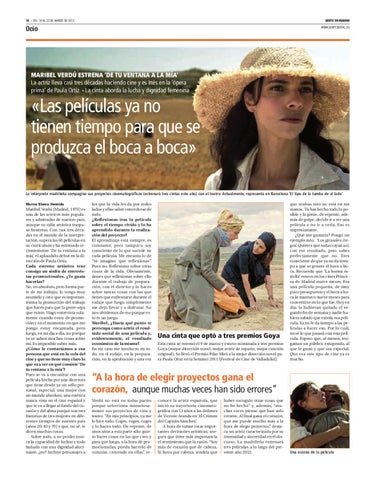 MARIBEL VERDÚ ESTRENA ‘DE TU VENTANA A LA MÍA’ La actriz lleva casi tres décadas haciendo cine y es Inés en la ‘ópera prima’ de Paula Ortiz · La cinta aborda la lucha y dignidad femenina