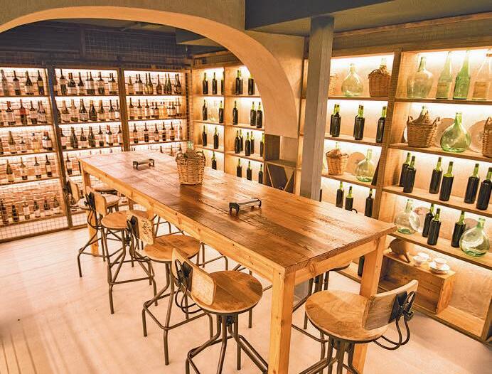 Nada más entrar, este espacio gourmet recibe a sus visitantes con un ambiente que les traslada a otra época. Ese viaje de los sentidos lo guía una amplia muestra de vinos que, como en los colmados de siglos atrás, se pueden adquirir o directamente disfrutar a pie de barra, justamente al lado de una vitrina donde se exponen algunas de sus joyas culinarias en forma de conservas. La carta de caldos da respuesta a to-